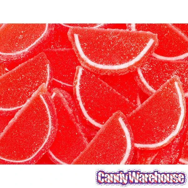 Box contains 5 pounds of unwrapped Red Raspberry Fruit Jell Slices Candy.