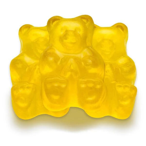 Bag contains 5 pounds of Yellow Mango Gummy Bears Candy.