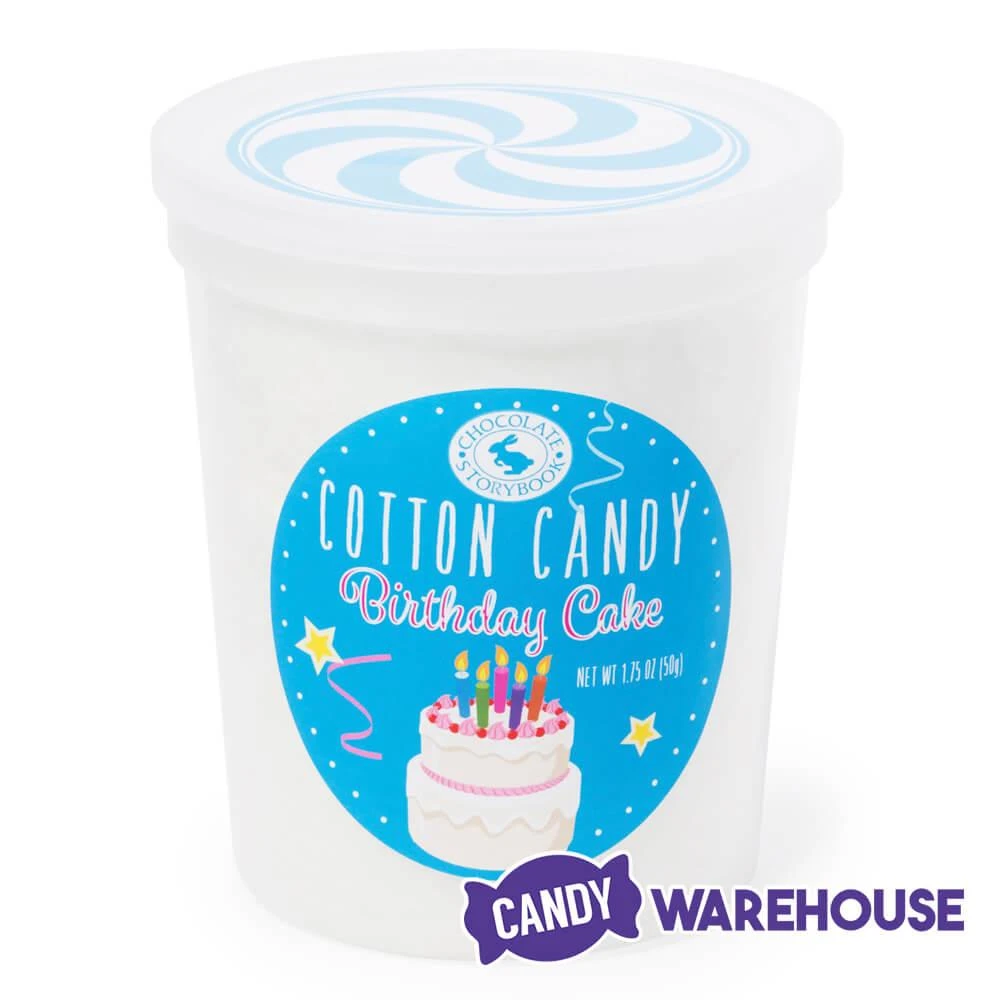 Turn every day into a celebration with a 1-ounce tub of Chocolate Storybook birthday cake cotton candy. The white birthday cake flavored sweet treat is light and fluffy, with a melt-in-your-mouth texture that comes from small-batch production and hand-packing while fresh. This all-natural white cotton candy is made from an exclusive recipe and contains no artificial colors or flavors. Wish a coworker “many happy returns of the day” with Chocolate Storybook’s award-winning gourmet cotton candy that’s handcrafted from hand-spun sugar. It’s a no-brainer for children’s birthday party favors. But you don’t need a special occasion to indulge in this delicious birthday cake cotton candy. It’s the perfect anytime snack or dessert, 365 days a year. Sample all of the amazing Chocolate Storybook cotton candy flavors here at Candy Warehouse that make great gifts for all ages.