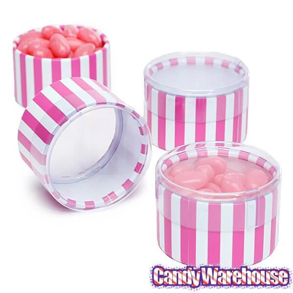So next time you find yourself in need of a truly dazzling presentation, may we suggest a fancier alternative? These fun and colorful favor boxes sure know how to make a sweet gift even sweeter! Add a little pizazz to your presents with hot pink stripes. These miniature cylinders feature a clear view-top lid and a sealed bottom, framing the candy inside like the work of delicious art it truly is!