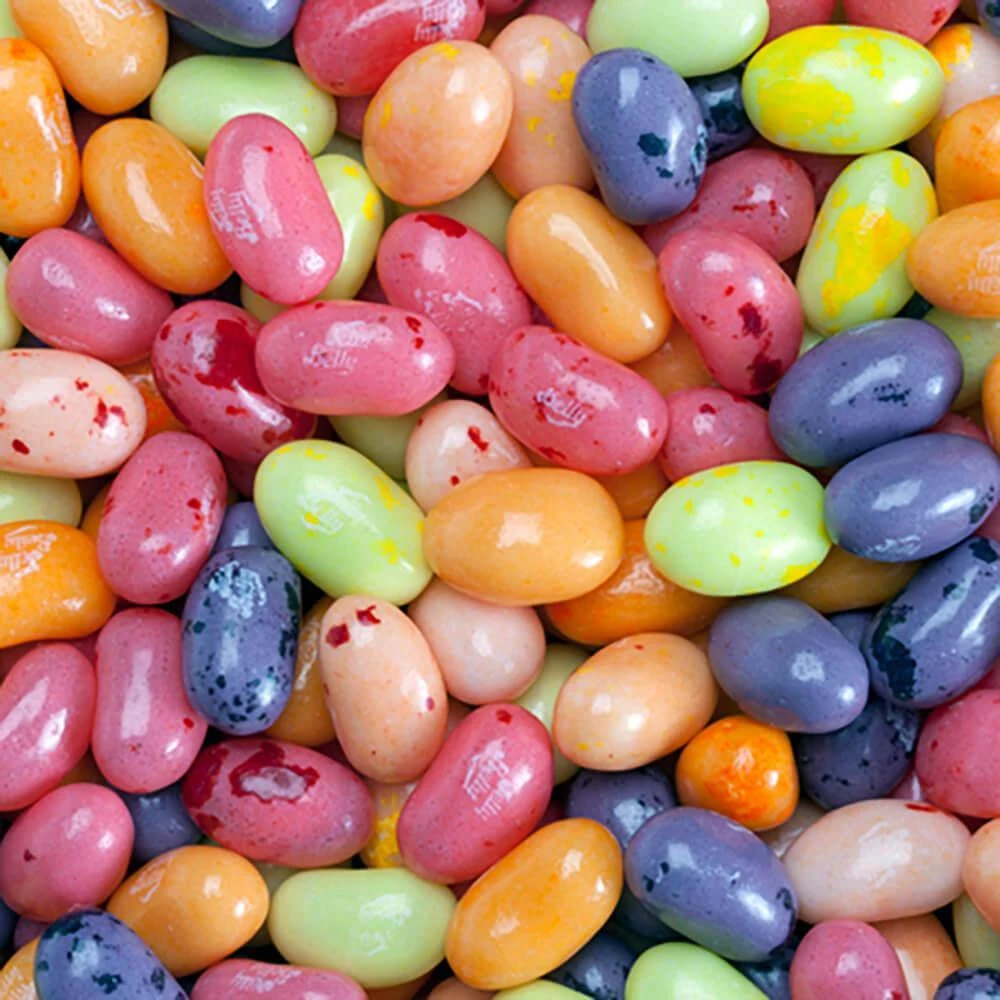 Case contains 10 pounds of Jelly Belly Smoothie Blend Jelly Beans Candy.