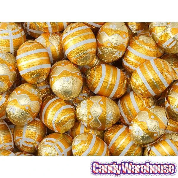 Bag contains 5 pounds of Foil Wrapped Caramel Filled Milk Chocolate Easter Eggs Candy.