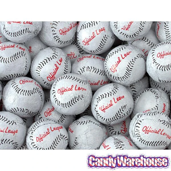 Box contains 5 pounds of Foil Wrapped Milk Chocolate Baseballs Candy.