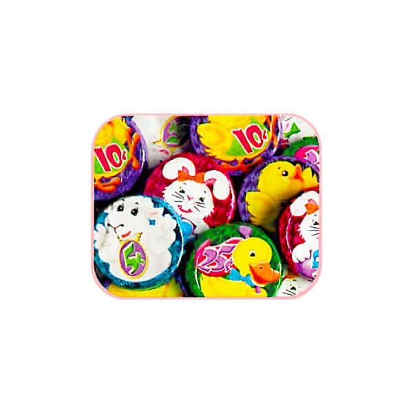Crispy milk chocolate coins wrapped in colorful Easter foils in an assortment of delicious denominations, including: 1 cent, 5 cents, 10 cents, 25 cents, and 50 cents. Sorry, these treats are not a valid form of U.S. currency. Perfect for Easter egg hunts!