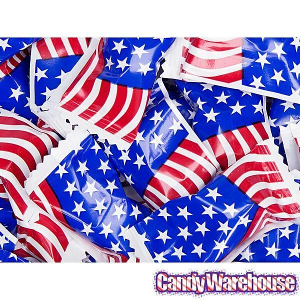 Case contains about 300 buttermint creams in USA Flag wrappers.