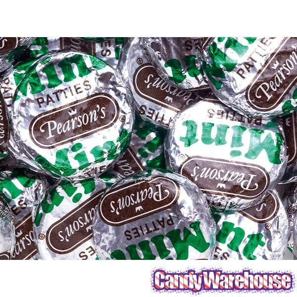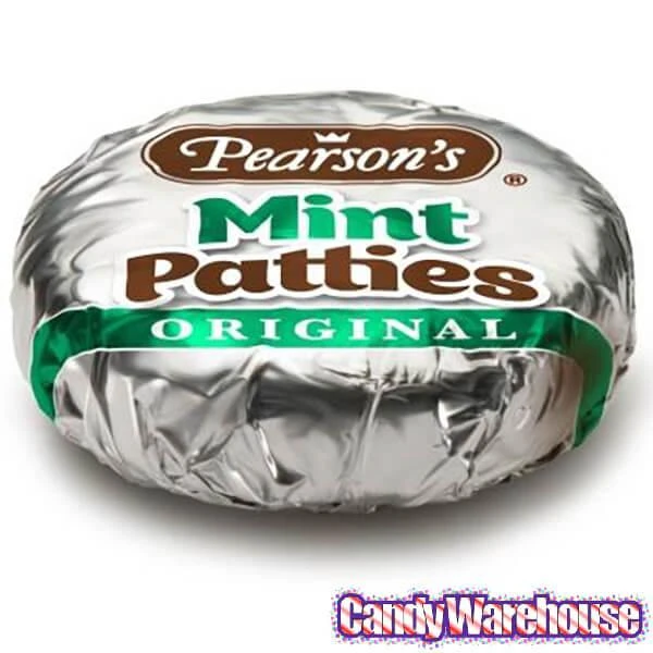 Yummy mint patties smothered in rich dark chocolate and wrapped in metallic silver foil! It’s no coincidence that every Pearson’s Mint Pattie is shaped like a medallion, for within its creamy center beats the heart of a champion confection—a texture that melts on the tongue and melts every heart!