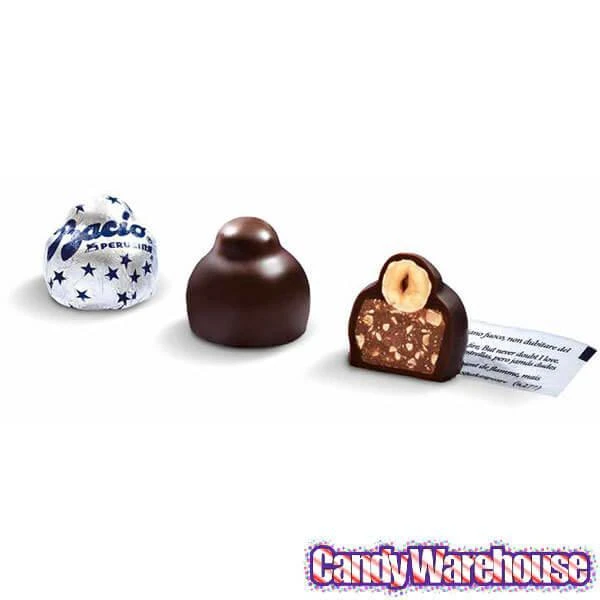 An Italian tradition of passion and style! Foil wrapped pieces of Baci smooth, rich dark chocolate mingled with whole and chopped Hazelnuts.
