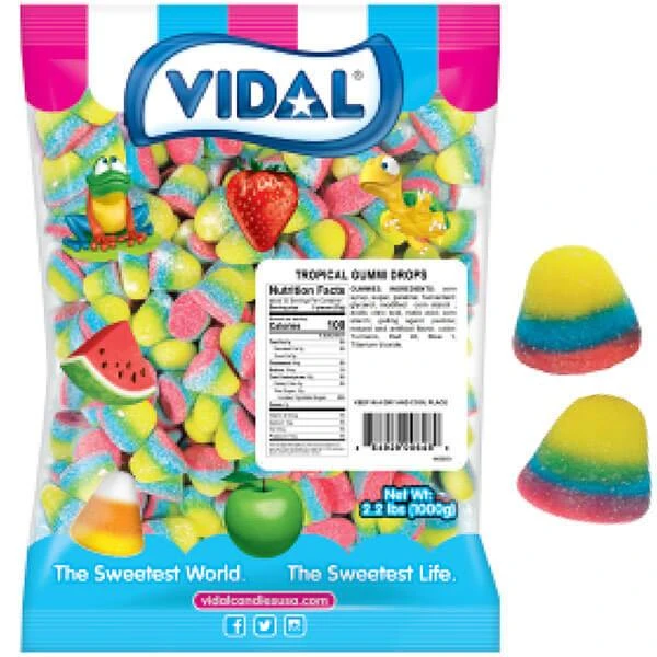 Bag contains 1 kilogram (about 2.2 pounds) of Pufflettes Tropical Rainbow Gummy Bites Candy.