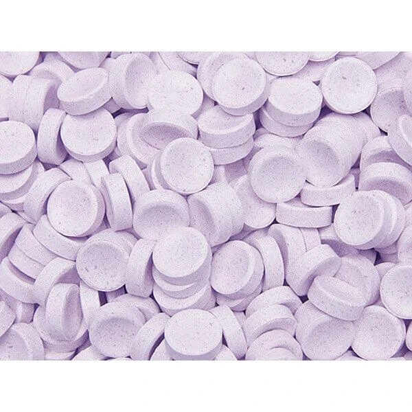 Bag contains 5 pounds of bulk unwrapped Pastel Purple Smarties Candy Tablets.