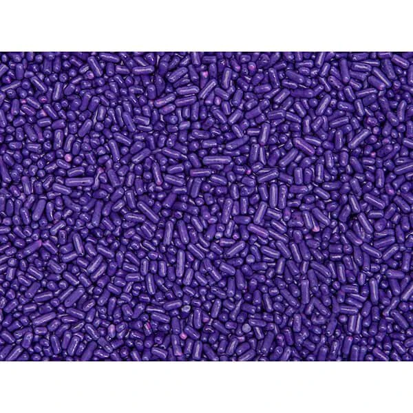 Carton contains 6 pounds of Purple Sprinkles Candy.