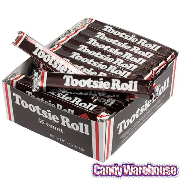 Display box contains 36 Tootsie Roll Candy Bars, each with a net weight of 2.25 ounces.