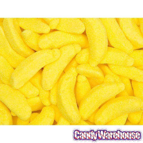 Bag contains 2 kilograms (about 4.4 pounds) of Yellow Gummy Banana Candy.