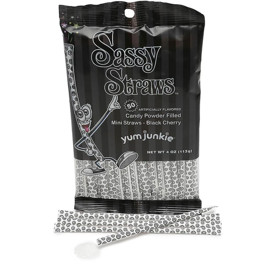 YumJunkie Sassy Straws Candy Powder Filled Mini Straws – Black Cherry: 50-Piece Bag